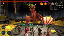 Ha elkezdi játszani a RAID: Shadow Legends játékot PC-n, elmerül egy csapat történetében. Négy rettenthetetlen hős egyként küzd, hogy elpusztítsa a sárkányt és elvegye a vagyonát. Hősök Galek, Ethel, Kael és Eilen. Mindegyikük különböző képességekkel rendelkezik - mágus, harcos, lövész és lándzsás, de tökéletesen kiegészítik egymást és támogatják. Igaz, a végső főnök túl erősnek bizonyul. Bármennyire is igyekeztek, a sárkány a levegőbe emelkedik, és lángot lövell ki a torkából... Senki sem élte túl.
